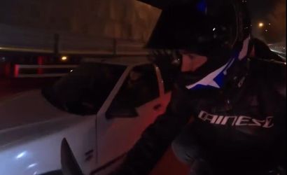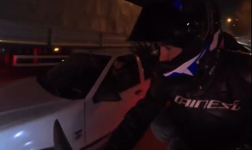 Olayda; arkasında yolcusu bulunan motosiklet, aynı yönde ilerleyen otomobili sollamaya çalışırken, sollama girişimi sırasında sol şeride kontrolsüz şekilde geçen otomobil motosiklete yandan çarptı. Çarpmanın ardından motosikletteki iki kişi sarsıldı ancak kısa sürede toparlandılar. Olay anları kask kamerasına anbean yansıdı.