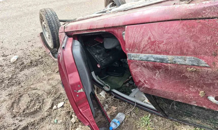 Eskişehir'de yağış sonrası takla atan otomobilde 3 kişi yara almadan kurtuldu