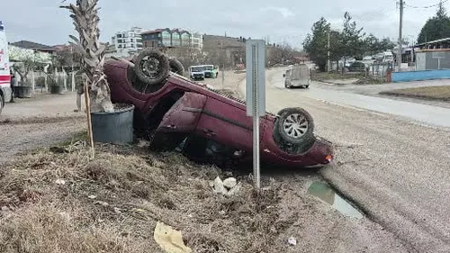 Eskişehir'de yağış sonrası kayganlaşan yolda takla atan otomobildeki 3 kişi yara almadan kurtuldu