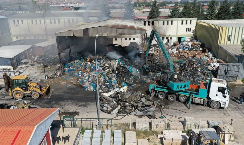 Eskişehir'in Odunpazarı ilçesinde bir geri dönüşüm tesisinde çıkan yangın, itfaiye ekiplerince söndürüldü.