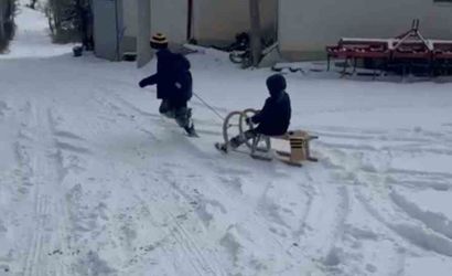 Okula gitmeyen minik öğrenciler kartopu oynayarak ve kızakla köy yollarında kayarak zaman geçirdi. Çocukların neşeli halleri ve kırsal yaşamdan samimi kareler cep telefonu kamerasına yansıdı, bu görüntüler hem tatilin doğasını hem de köy yaşamının basit sevinçlerini belgeledi.