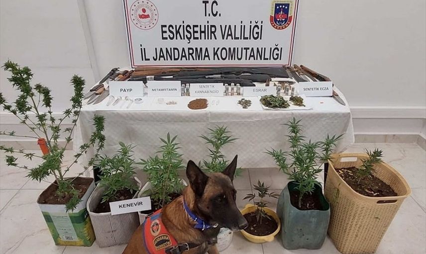 Eskişehir'in Odunpazarı ilçesinde düzenlenen uyuşturucu operasyonunda 7 zanlı gözaltına alındı. Aramada, 51 gram esrar, 24 gram sentetik uyuşturucu, 7 kök Hint keneviri, 1 sentetik ecza hap, 4 uyuşturucu kullanma aparatı, 7 ruhsatsız av tüfeği, 23 fişek, 15 av tüfeği fişeği ve 13 bıçak ele geçirildi. Operasyonda narkotik köpeği de yer aldı.