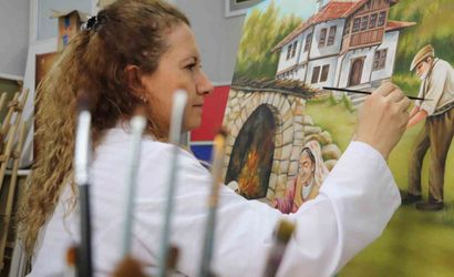 Atölyede üretilen eserler, günlük aile ritüellerini gözlemlenen sahneler üzerinden anlatıyor. Eserlerden birinde; dedesiyle birlikte fidan diken erkek çocuk ile annesi ve ninesinin yanında ocak başında hamur açan bir kız betimleniyor. Bu tür sahneler, izleyicide sıcak bir tebessüm oluşturan samimi kareler sunuyor ve toplumsal belleğe ilişkin bir belge işlevi görüyor.
