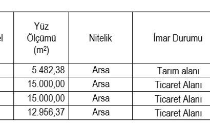 Satışa konu taşınmazlar ve tarih
