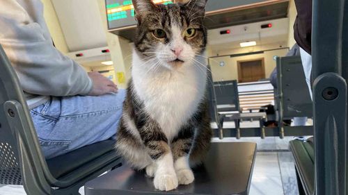 Eskişehir Tren İstasyonu'nda 'mahsur' numarası yapan kedi yine dikkat çekti
