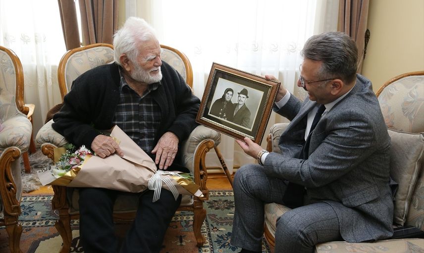 Vali Aksoy, 3 çocuğu ve 6 torunu bulunan Ali Çakır'la bir süre sohbet etti. 23 Nisan 1923 doğumlu olan ve geçmişte 10 yıl muhtarlık yapan Ali Çakır'ın, Mustafa Kemal Atatürk'ün ölümü ve Maliye Bakanı Hasan Polatkan hakkında anılarını dinledi.