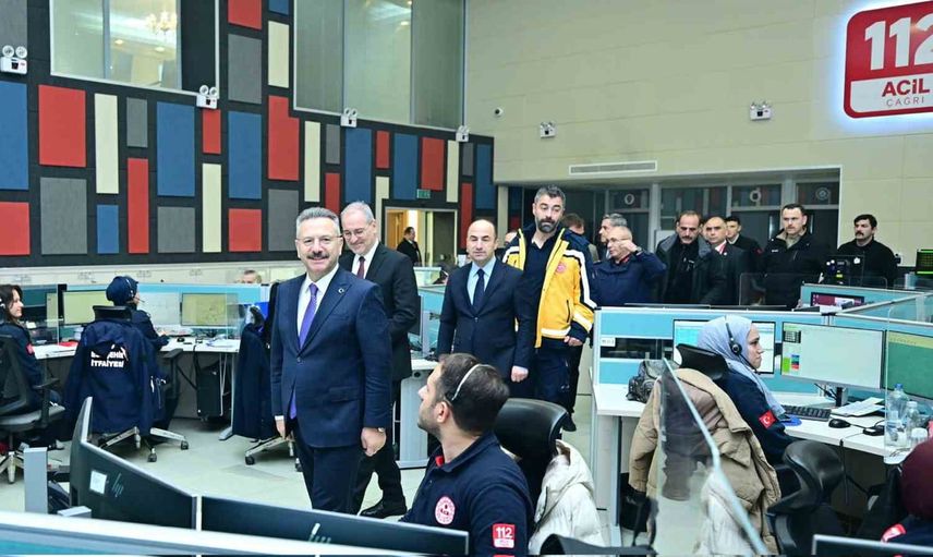 Ziyarette Vali Aksoy, gelen ihbarlar, merkezde yürütülen çalışmalar ve acil çağrı hizmetleri hakkında merkez personelinden bilgi aldı. Ziyaret sırasında personelin çalışmalarına yönelik teşekkürlerini iletti ve görevlerinin önemine vurgu yaptı.