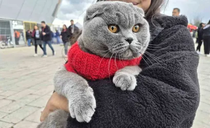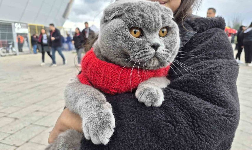 ESKİŞEHİRSPOR TARAFTARI ARİFE MASAL SARITAŞ, KÜTAHYASPOR MAÇINA SİYAH-KIRMIZILI GİYDİRDİĞİ KEDİSİ İLE BİRLİKTE GELDİ.