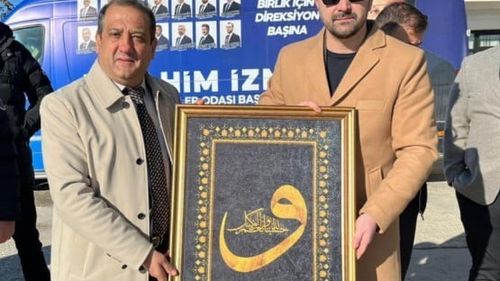 ESMİAD üyeleri, Eskişehir Şoförler Odası Başkan Adayı İbrahim İzmir’i ziyaret ederek destek verdi; Oğuz Sinlenmez hediye takdim etti ve toplu fotoğraf çekildi.
