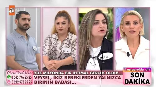 Esra Erol programında konuk ettiği Betül isimli konuğun DNA sonucu televizyon ekranlarında izleyenler dahil herkesi şaşkına uğrattı . Özellikle Esra Erol ilk defa böyle bir olayla karşılaştığını, milyonda bir ihtimalin olduğunu dile getirdi. İkiz bebeklere yapılan DNA testinde, bebeklerin babalarının farklı kişiler olduğu ortaya çıkınca, ortalık fena karıştı.