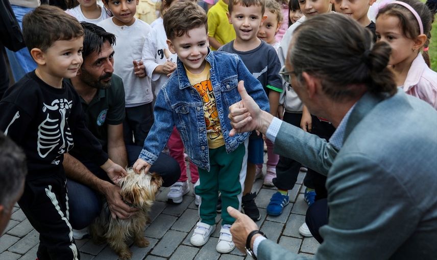 Etimesgut Belediye Başkanı Erdal Beşikçioğlu (sağda), eğitimleri tamamlanan sahipsiz köpeklerden beşinin belediye bünyesinde bekçi olarak atamasını gerçekleştirdi. Beşikçioğlu, Devlet Bahçeli Eğitim Spor ve Yaşam Merkezindeki kreşe ve hayvan barınağına giderek açıklamalarda bulundu.