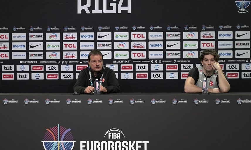 2025 Avrupa Basketbol Şampiyonası (EuroBasket 2025) A Grubu'ndaki ilk maçında yarın Letonya ile karşılaşacak A Milli Takım'da başantrenör Ergin Ataman (fotoğrafta) ve milli basketbolcu Cedi Osman, Arena Riga'da oynanacak müsabaka öncesinde düzenlenen basın toplantısında açıklamalarda bulundu.