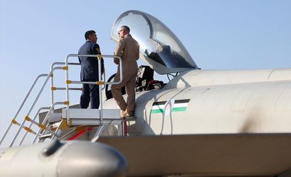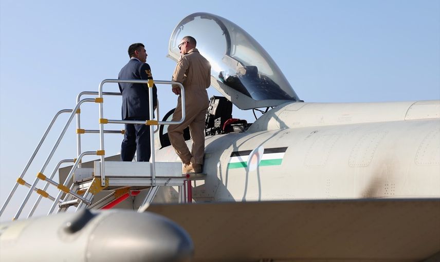 Katar'da tatbikata katılan Birleşik Krallık Hava Kuvvetleri'ne ait Eurofighter Typhoon savaş uçakları Ankara'daki Mürted Hava Üssü'ne indi. İncelenmek üzere ülkeye gelen uçakları, Birleşik Krallık Savunma Tedarik ve Sanayi Devlet Bakanı Maria Eagle (sol 3) ile Hava Kuvvetleri Komutanı Orgeneral Ziya Cemal Kadıoğlu (sol 2), Bakan Yardımcısı Şuay Alpay (solda) ve görevli askeri personel karşıladı.