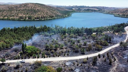 Ankara'da Eymir Gölü Yakınında Yangın Ankara'da, Eymir Gölü çevresindeki ormanlık alanda bu sabah henüz bilinmeyen bir nedenle yangın çıktı. Yangın, vatandaşların ihbarı üzerine bölgeye intikal eden çok sayıda polis ve itfaiye ekibi tarafından söndürülmeye çalışılıyor. Havadan ve Karadan Müdahale Yangına,…