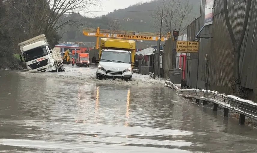 Eyüpsultan'da Ayazağa Cendere Yolu'nda Yağmur Sonrası Taşkın: Hafriyat Kamyonu Yan Yattı