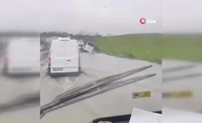 Ekipler, olay yerinde yolu kapatarak trafiği diğer şeritten yönlendirdi ve su tahliyesi çalışması gerçekleştirdi. Bir kısmı suya gömülen servis aracı, yürütülen çalışmaların ardından bulunduğu kanaldan çıkarıldı.