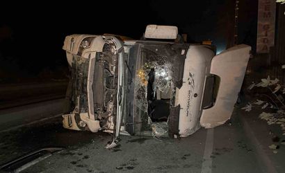 Eyüpsultan Kemerburgaz Cendere yolunda akşam saatlerinde bir hafriyat kamyonu yan yatarak devrildi. Olay saat 21.30 sıralarında meydana geldi. Sürücü Emre T. (35) idaresindeki 34 GEF 048 plakalı, mıcır yüklü hafriyat kamyonu, sürücünün kontrolü kaybetmesi sonucu önce ters şeride girip ardından yan yatmak suretiyle devrildi.