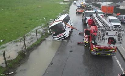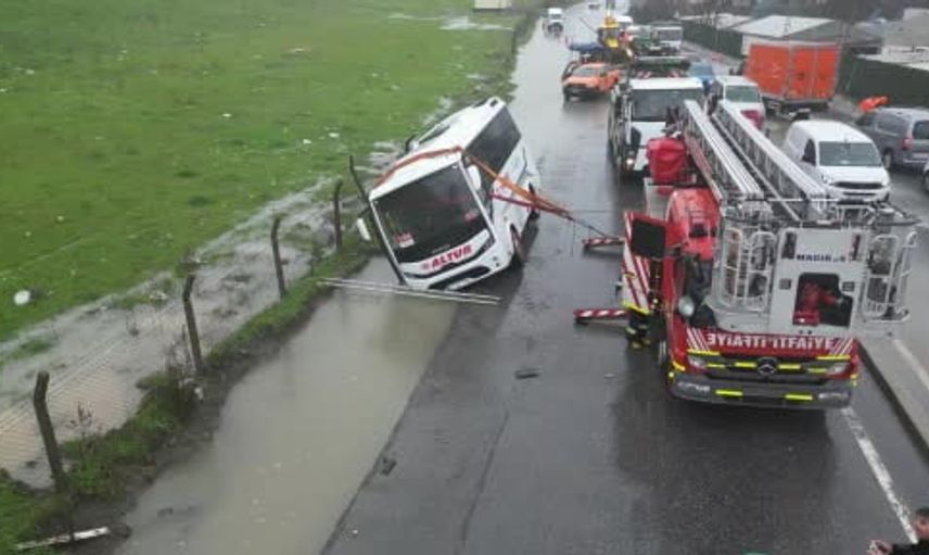 Eyüpsultan’da yan yatan servis aracı böyle görüntülendi