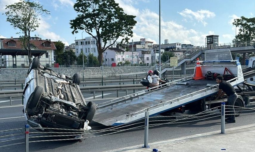 İstanbul'un Fatih ilçesinde, Kumkapı istikametinde seyir halindeyken bariyere çarpan otomobil devrildi. Olayda iki kişi hafif yaralandı.