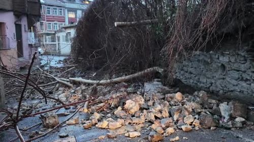 Fatih'te sağanak sonrası istinat duvarı Albayrak Sokak'a çöktü