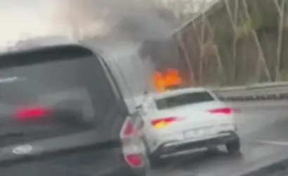Edinilen bilgiye göre, seyir halindeki bir aracın motor kısmından dumanlar yükselmeye başladı. Durumu fark eden sürücü, aracı sağ şeride çekti ve yükselen alevlere müdahale etmeye çalıştı. Ancak yangın kısa sürede tüm aracı sardı.