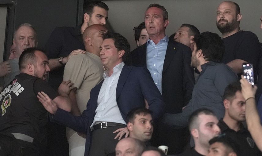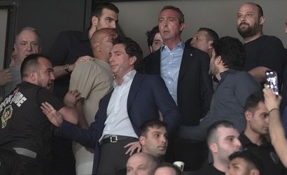 Türkiye Sigorta Basktebol Süper Ligi play-off final serisi dördüncü maçında Beşiktaş Fibabanka ile Fenerbahçe Beko, Basketbol Gelişim Merkezi'nde karşılaştı. Derbinin son anlarında salonda gerginlik çıktı. Siyah-beyazlı taraftarların küfürlü tezahüratının ardından Fenerbahçe Kulübü Başkanı Ali Koç (ortada), saha kenarından yöneticilerin bulunduğu locaya yöneldi.