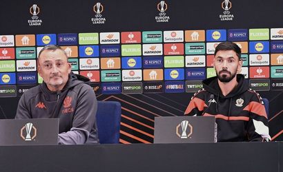 UEFA Avrupa Ligi'nin 2. haftasında yarın İstanbul'da Fenerbahçe ile karşılaşacak olan Nice takımının teknik direktörü Franck Haise (solda) ve oyuncusu Morgan Sanson (sağda), Chobani Stadı'nda düzenlenen basın toplantısında açıklamalarda bulundu.