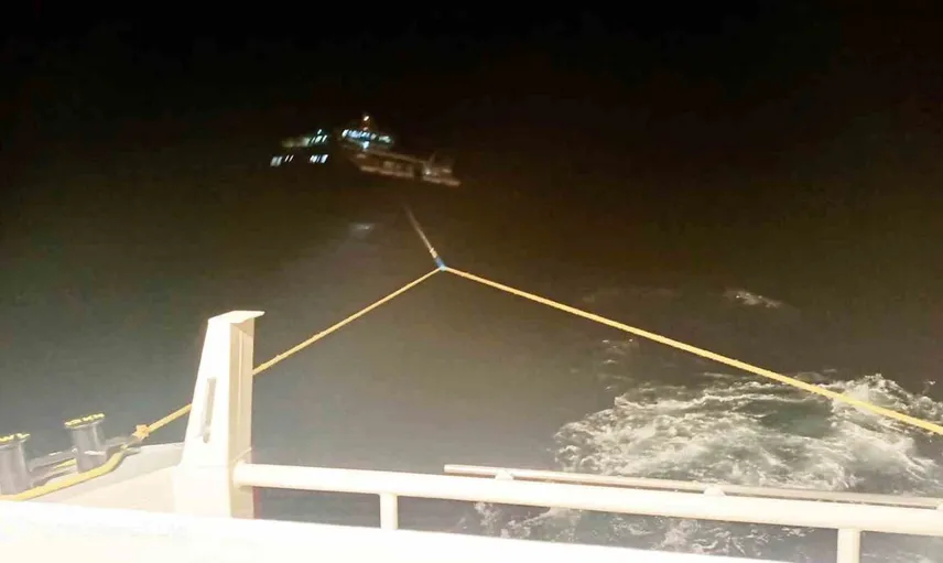 Arızaya uğrayan ve 31 metre uzunluğunda olan teknede 5 kişi bulunuyordu. Sürüklenme tehlikesi üzerine ekipler bölgeye intikal ederek duruma müdahale etti.