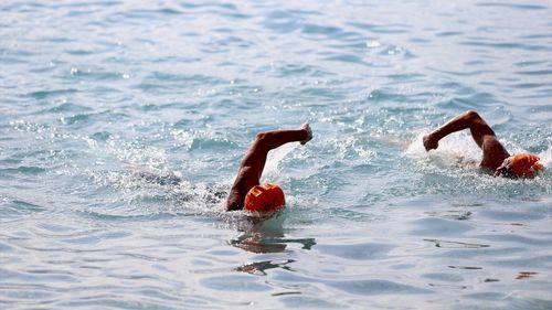 Fethiye'de düzenlenen 5. Uluslararası Spor Festivali'nde Kelebekler Vadisi'nde yüzme yarışı yapıldı.
