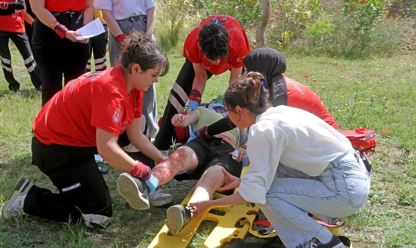 Muğla'nın Fethiye ilçesinde üniversitede yapılan afet ve acil durum uygulama tatbikatı gerçeğini aratmadı. Tatbikatta, senaryo gereği trafik kazası sonucu çoklu yaralanma, kopan uzuv, vücutta yanık, göğüs ağrısı ve dar alandan hasta çıkarma durumları canlandırıldı. Sağlık görevlisi rolünü canlandıran öğrenciler, yaralılara yeşil, sarı, kırmızı ve siyah kodlarla öncelik sırasına göre müdahale etti.