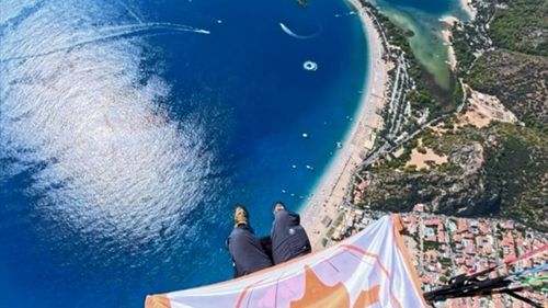 Fethiye'de Alzheimer farkındalığı için Babadağ'dan yamaç paraşütü uçuşu