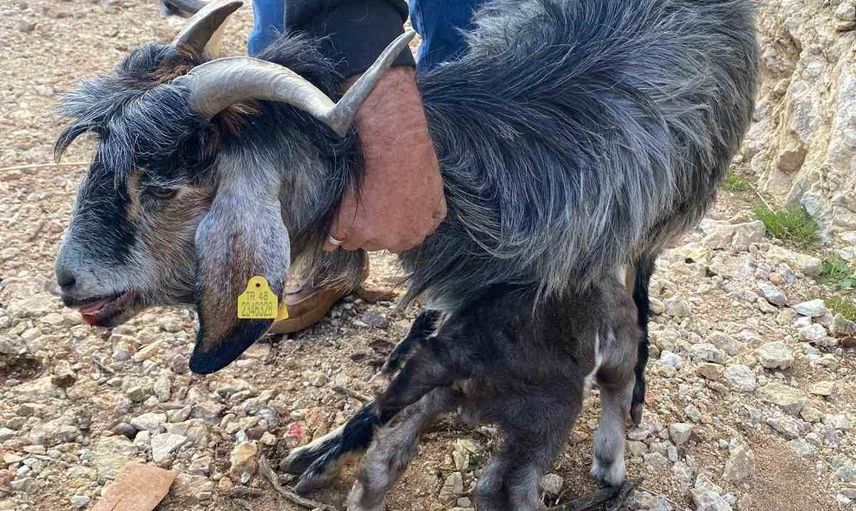 Fethiye'de kayalıklarda mahsur kalan keçi, MAG ekiplerince yaralı kurtarıldı