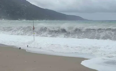 Belcekız Sahili'nde yağışın etkisiyle yaklaşık 3 metreyi bulan dalgalar oluştu. Yüksek dalgalar kıyıdaki bazı işletmelere zarar verirken, dalgaların etkisini azaltmak amacıyla sahilde iş makineleriyle çalışma gerçekleştirildi.