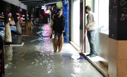 Muğla'nın Fethiye ilçesinde meydana gelen şiddetli yağış, su baskınlarına yol açtı. Yaklaşık bir saat süren sağanak, birçok iş yeri ve evin bodrum ile giriş katlarını su baskınına maruz bıraktı.