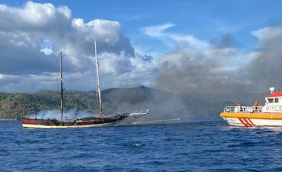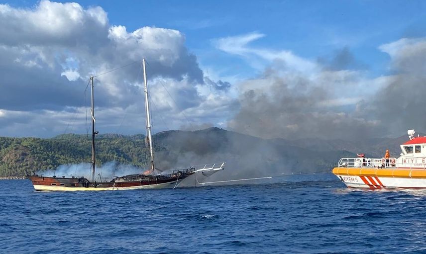 Muğla'nın Fethiye ilçesi Göcek Mahallesi açıklarındaki Yassıca Ada önlerinde demirli bulunan ahşap gulette henüz belirlenemeyen bir nedenle yangın çıktı.