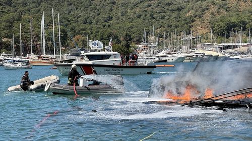 Fethiye'de çıkan yangında 3 motor yat ve 1 yelkenli battı, 2 motor yat kullanılamaz hale geldi.