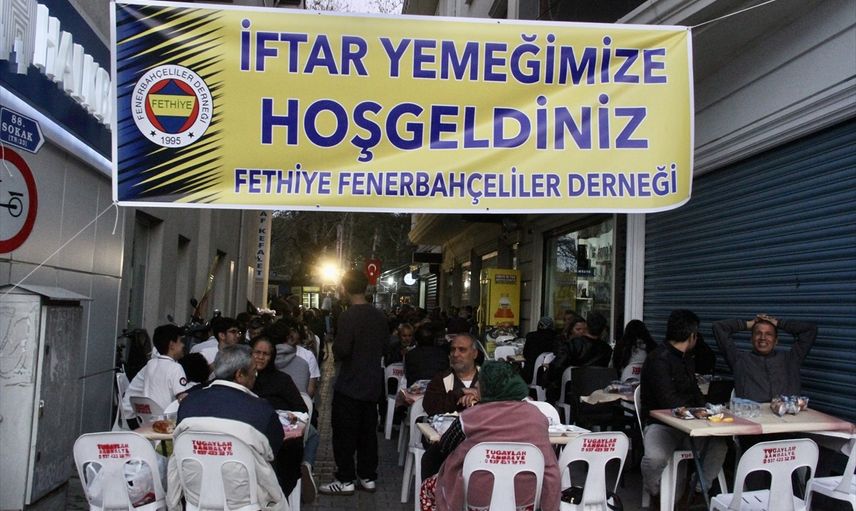 Fethiye Fenerbahçeliler Derneği tarafından gerçekleştirilen iftar programı, Cumhuriyet Mahallesi Belediye İş Hanı önünde düzenlendi. Etkinliğe, Fenerbahçeli taraftarların yanı sıra diğer takım taraftarlarının da katılım göstermesi dikkat çekti.