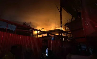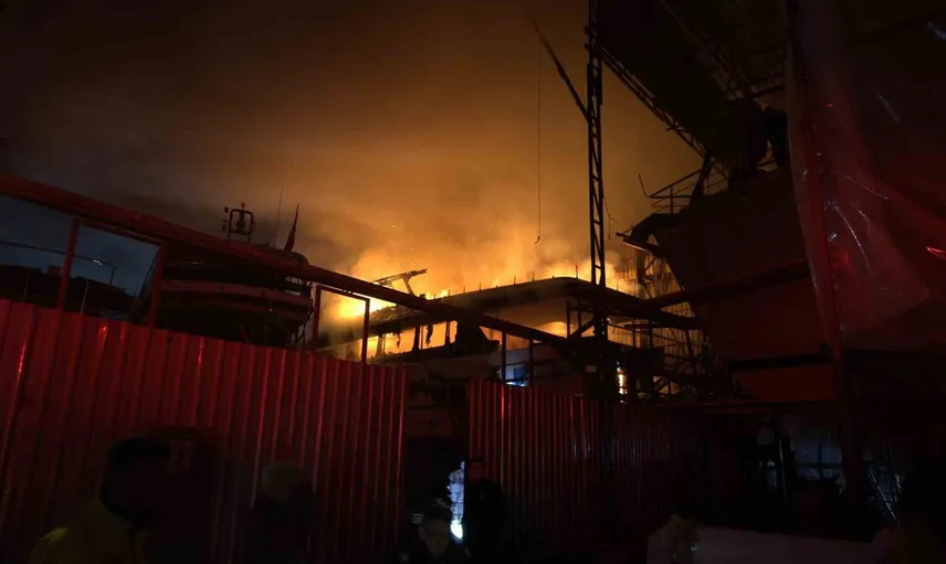 Fethiye Karagözler Mahallesi'nde tersanede ahşap tekne yangını