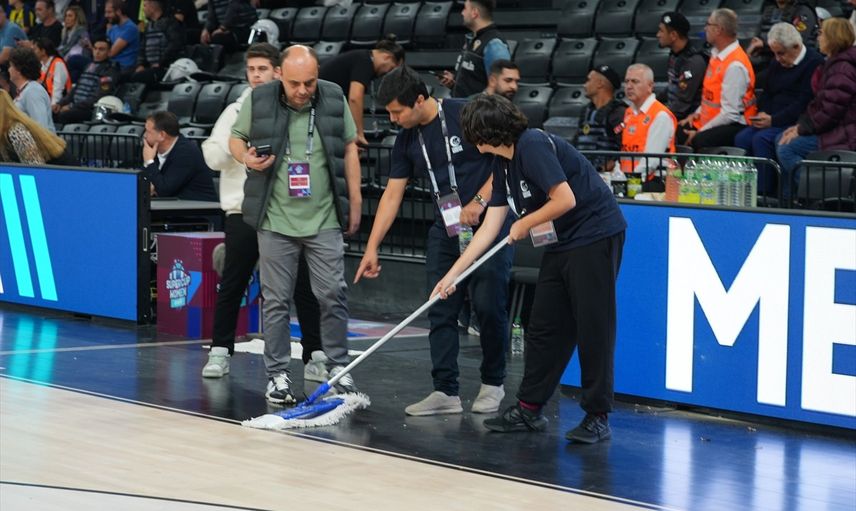 Basketbol Gelişim Merkezi'nde başlayan müsabaka, henüz 1 dakika 56 saniye oynandıktan sonra durduruldu. Bu sırada seyirciler, güvenlik nedeniyle salonu terk etmek zorunda kaldı.