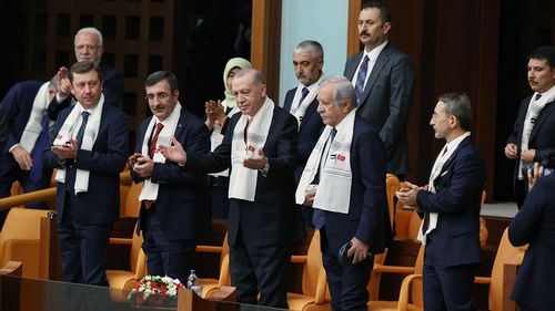 Filistin Devlet Başkanı Mahmud Abbas, olağanüstü toplantıda TBMM Genel Kuruluna hitap ediyor.