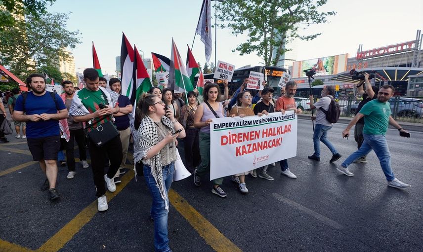 Filistin Eylem Komitesi üyeleri, İsrail'in Gazze'ye ve İran'a yönelik saldırılarını bu ülkenin İstanbul Başkonsolosluğu önünde protesto etti. Levent Metrosu'nun çıkışında toplanan grup üyeleri, "Nehirden denize özgür Filistin", "Kınamayla soykırım engellenemez", "Filistin'e özgürlük İsrail'e boykot" sloganları eşliğinde Başkonsolosluğa yürüdü.