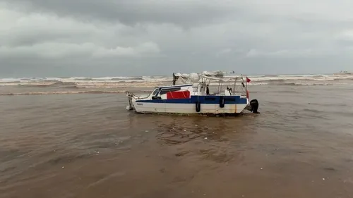 Antalya'nın Finike ilçesinde öğle saatlerinden itibaren etkili fırtına ve sağanak, açıkta demirli bir tekneyi karaya sürükledi; deniz kahverengiye döndü.