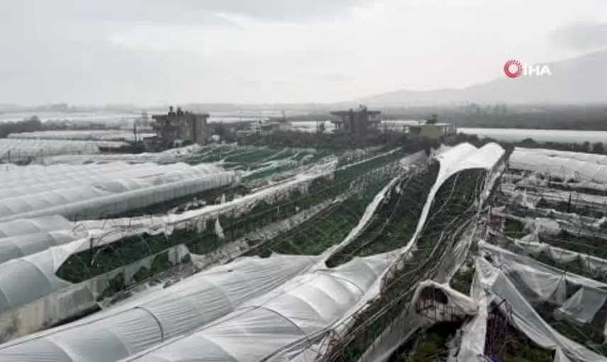 Finike'de hortum seraları ve binaları hedef aldı