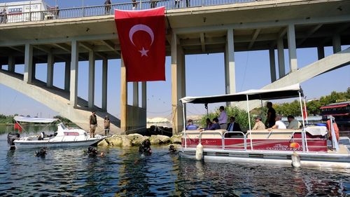Birecik'te dalgıçlar, Türk bayrağı açarak 30 Ağustos Zafer Bayramı'nı coşkuyla kutladı.