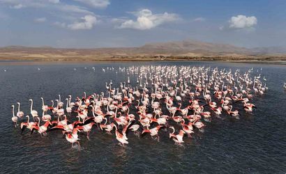Doğunun saklı cenneti Van'daki Erçek Gölü, bu yıl da göç rotası üzerindeki flamingoları ağırlıyor. Göçmen kuşların Kuzey Afrika'dan İran'a uzanan yolculuğunda Van Gölü havzası, sulak alanlarıyla birçok türden binlerce kuş için önemli bir konaklama merkezi konumunda.