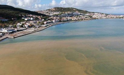 Foça'da sağanak seli: yollar göle döndü, sahil boyunca deniz rengi kırmızıya döndü