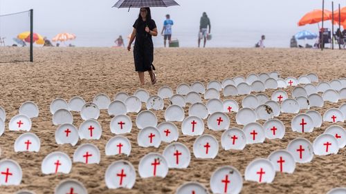 Rio de Janeiro'da G20 Zirvesi öncesi aktivistler, açlıkla mücadele için 733 boş tabağı Copacabana Plajı'na bıraktı.