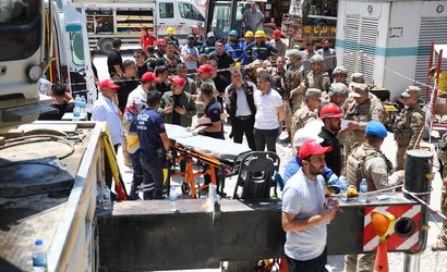 Yaralı işçilerden biri helikopterle hastaneye ulaştırıldı, diğer işçi ambulansla hastaneye kaldırıldı.