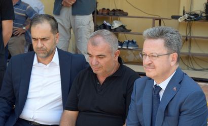 Şırnak'ta Gabar Dağı'ndaki petrol sahasında sondaj kulesinin devrilmesi sonucu enkaz altında kalarak hayatını kaybeden mühendis Mehmet İrfan Güler, memleketi Manisa'da son yolculuğa uğurlandı. Enerji ve Tabii Kaynaklar Bakan Yardımcısı Ahmet Berat Çonkar (solda) ve Manisa Valisi Enver Ünlü (sağda), baba İbrahim Güler'e (ortada) başsağlığı dileklerinde bulundu.