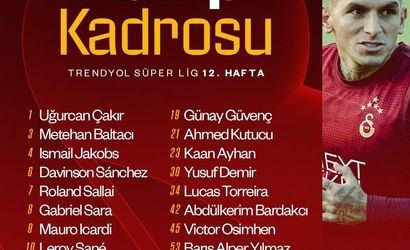 TRENDYOL SÜPER LİG'İN 12. HAFTASINDA KOCAELİSPOR'A KONUK OLACAK GALATASARAY'IN KAMP KADROSU AÇIKLANDI.